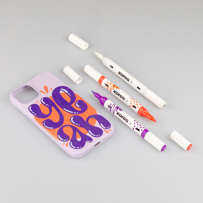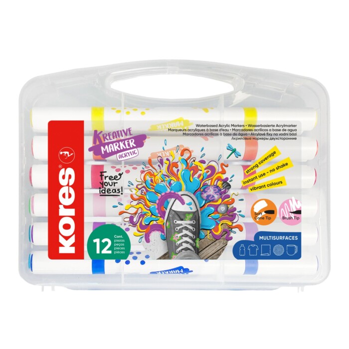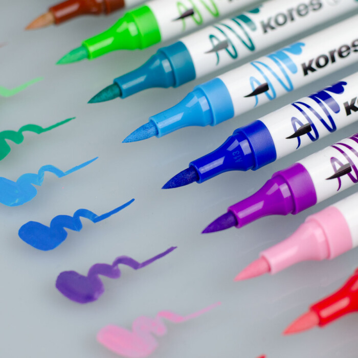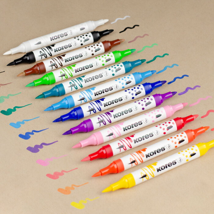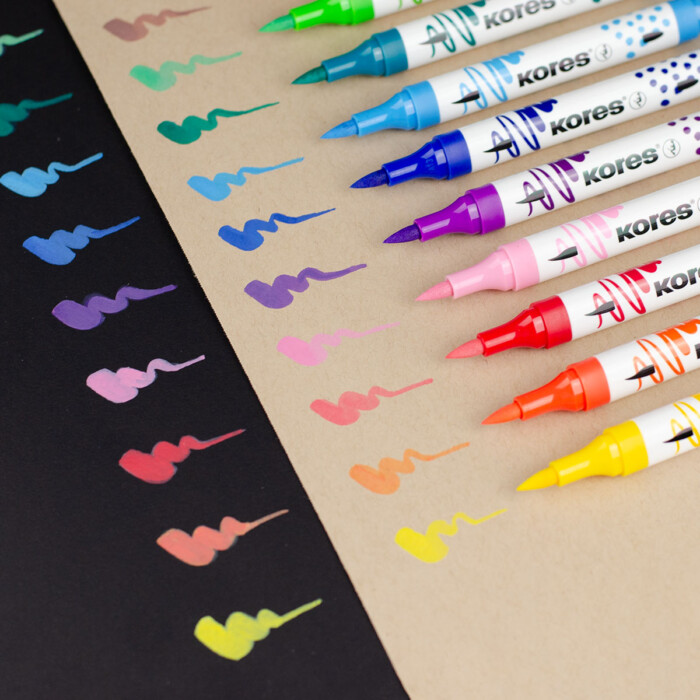 Nekonečné možnosti kreativního tvoření s akrylovými popisovači Kores, které kombinují štětcový a kónický hrot. Jsou ideální pro kreslení, psaní i práci s jemnými detaily.