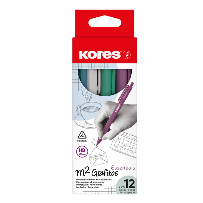 Mechanická tužka Kores M1 Grafitos Mikrotužka M1 Grafitos v čirém designu s trojhranným ergonomickým tvarem je ideální pro přesné psaní, kreslení a rýsování. Dostupná v šíři stopy 0,5 mm a s praktickým klipem. Podrobnosti