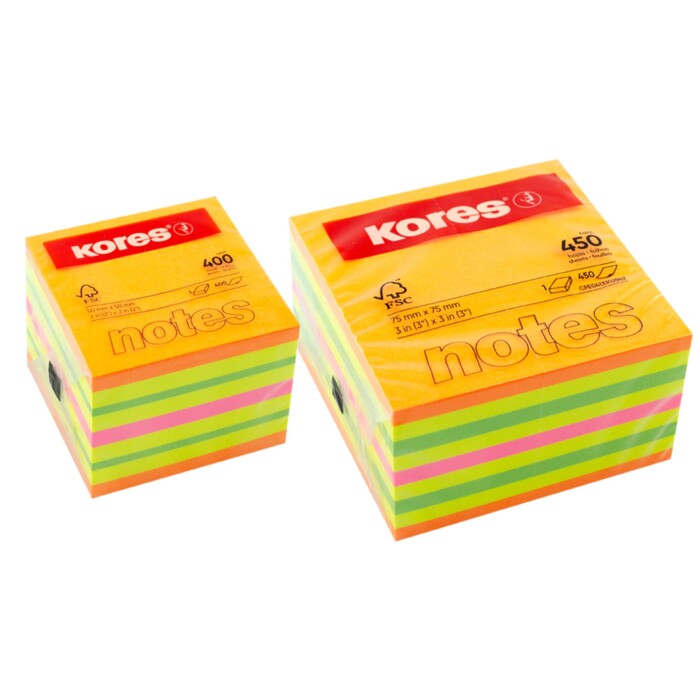 Neonové samolepicí bločky Nepermanentní papírové samolepicí bločky. Při opakovaném použití nezanechává skvrny. Vzájemně se nekroutí. Ideální pro zanechání vzkazů a připomínek. K dispozici v 5 neonových barvách. Podrobnosti