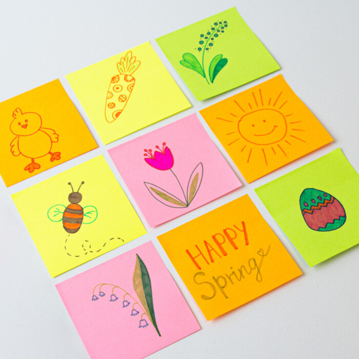 - Spring Haftnotizen: lila, gelb, grün und blau