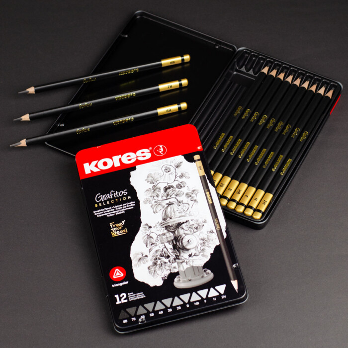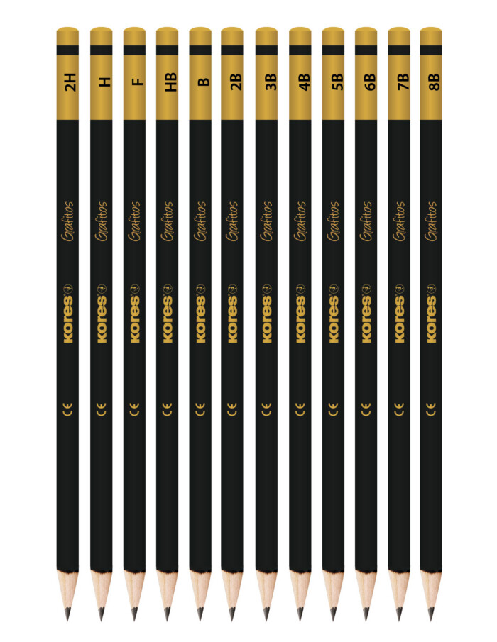 Graphite pencils different grades 12pcs set: 8B, 7B, 6B, 5B, 4B, 3B, 2B, B, HB, F,H, 2H
